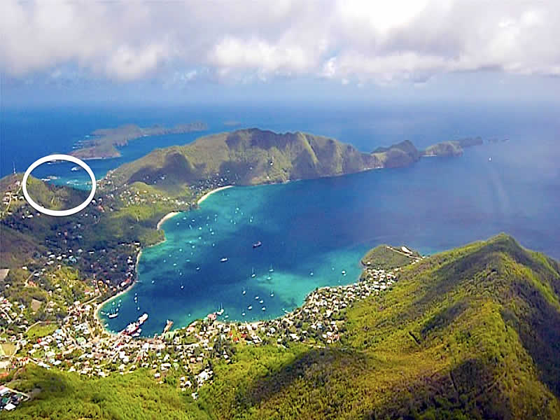 Astounding double views attained here – southern Grenadines and Lower Bay incorporating the entrance to Admiralty Bay.