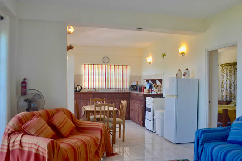 There are sliding doors in both the lounge and kitchen which open out onto the terrace – perfect for outside dining & relaxing. There is a good sized open plan kitchen/diner and lounge. There are two double bedrooms with generous sized en suite bathrooms & wardrobe space. The front bedroom has sliding doors opening out onto the balcony and views of Admiralty Bay.